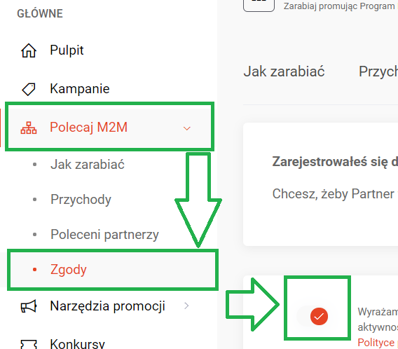 3. ZAZNACZ ZGODĘ SIECI PARTNERSKIEJ (instrukcja obrazkowa powyżej)